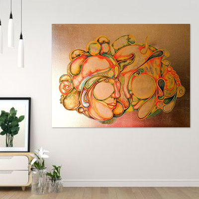 Technique: Oil painting on canvas, copper leaf painting, sketch